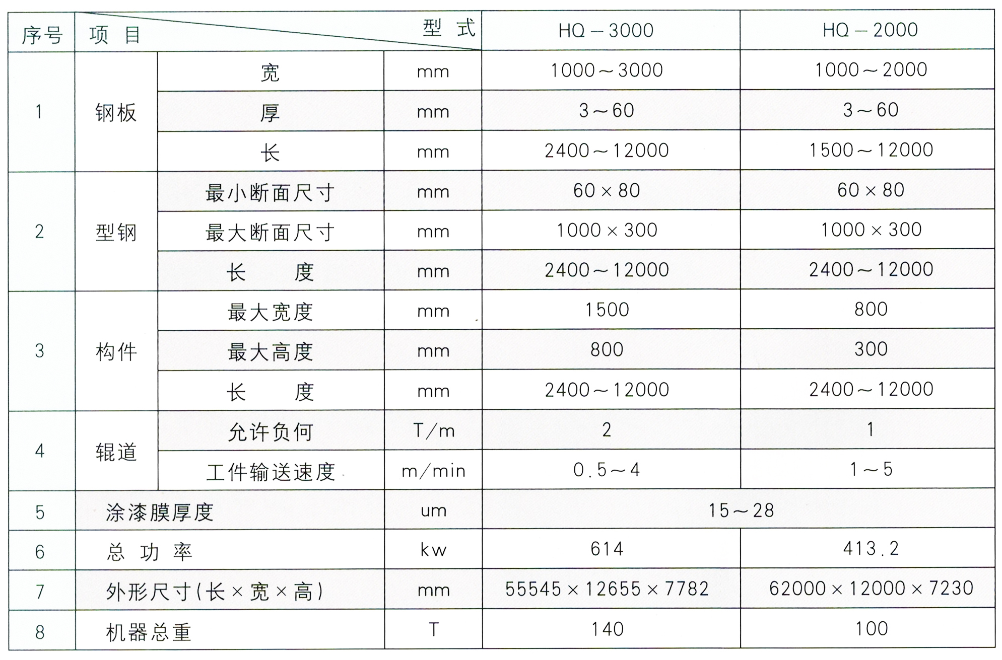 鋼板處理工藝生產(chǎn)線是指鋼材在加工前進行的表面拋丸除銹并涂上一層保護底漆的加工工藝。鋼材經(jīng)過預處理可以提高機械產(chǎn)品和金屬構件的抗腐蝕能力,提高鋼板的