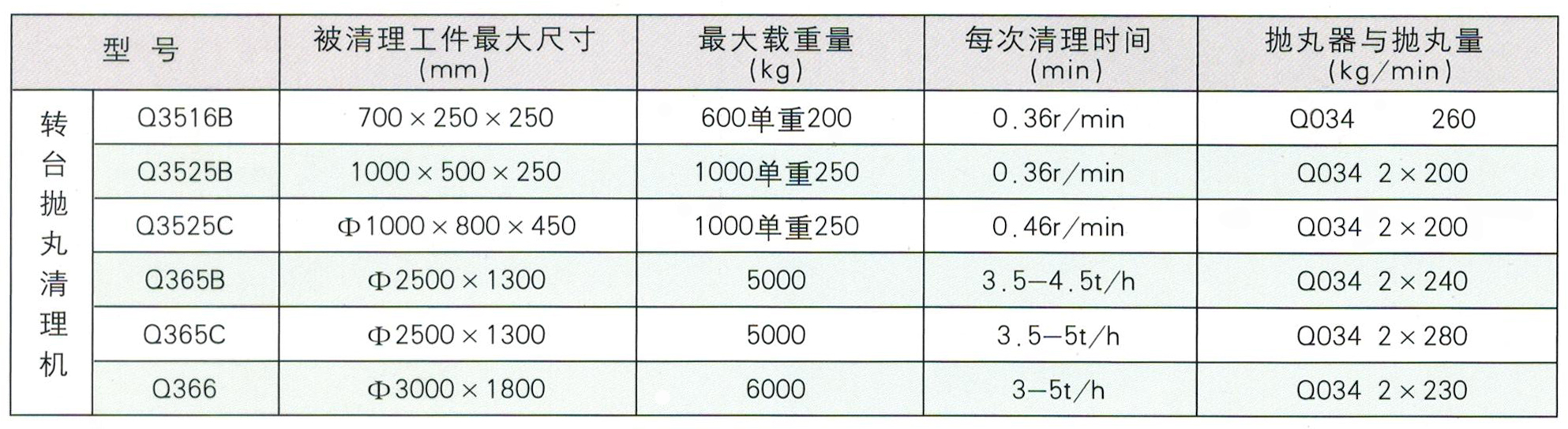 Q35系列:轉(zhuǎn)臺(tái)被清理室的橡膠密封簾分割成室內(nèi),室外兩部分。室內(nèi)清理,室外翻輕快地及裝卸工件;具有較高的生產(chǎn)率。