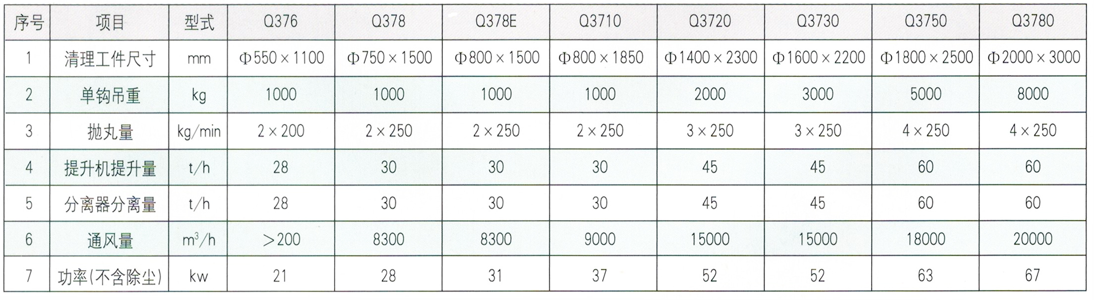 2、對(duì)于重型工件,拋丸機(jī)可選配電動(dòng)葫蘆。